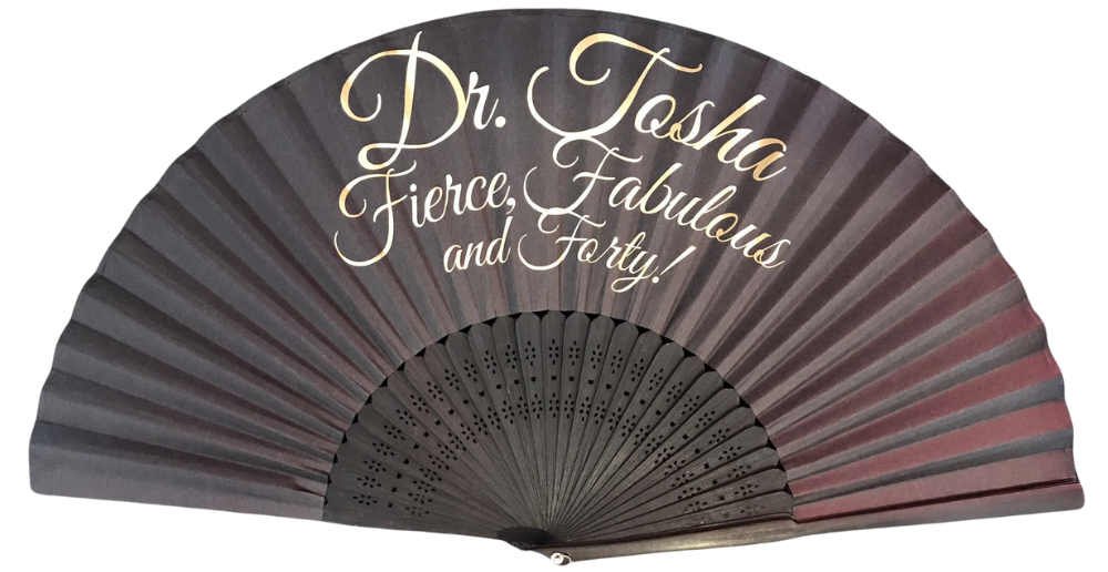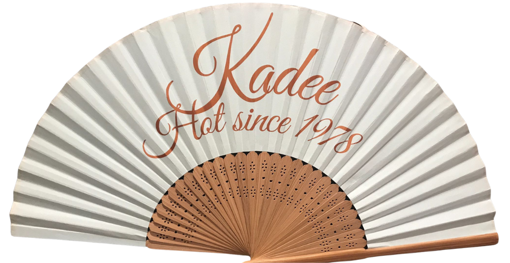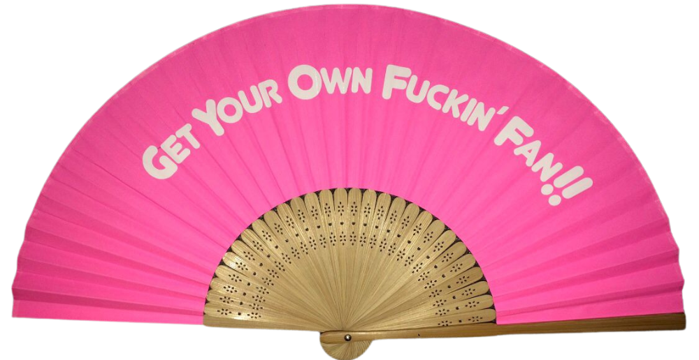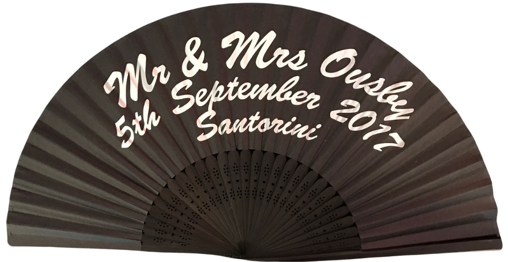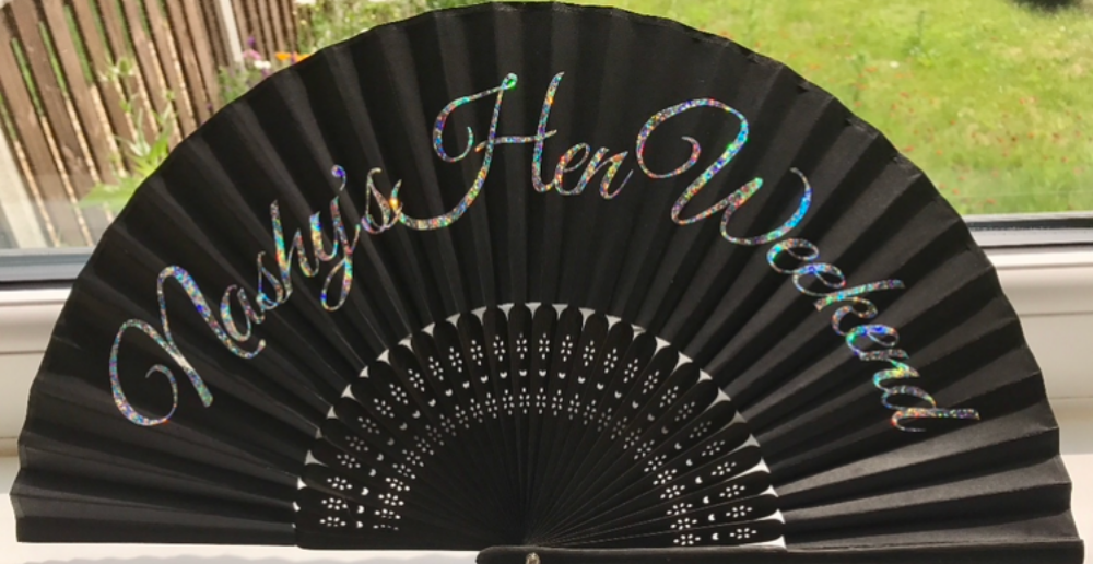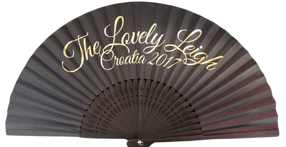 All our fans can be personalised to your exact specifications, allowing you to express yourself in any way you want. From something as simple as adding your name…no-one can pinch your fan then, can they! to adding a clever catchphrase, a slogan or even something cheeky and naughty…the naughtier the better in our opinion, the possibilities are truly endless. Want inspiration? Why not take a look at our Gallery for some of our previous Personalised fan orders.
