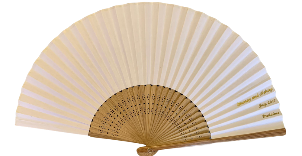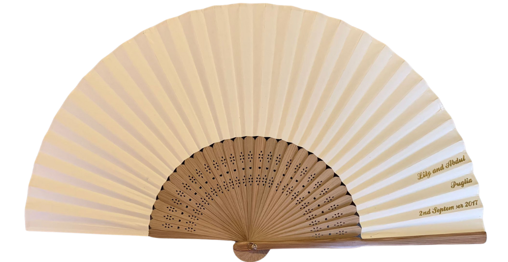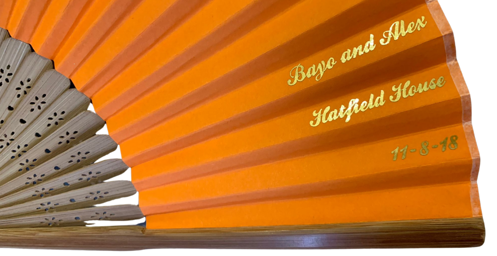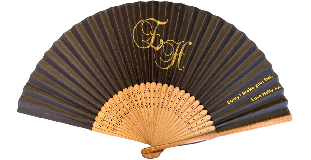 Each fan is lovingly and painstakingly handmade from start to finish and we pride ourselves on only ever sending out fans we’d be thrilled to receive ourselves. The respect and attention to detail that we give to each and every fan means they take time to complete. This varies according to your design and the quantity of fans ordered.