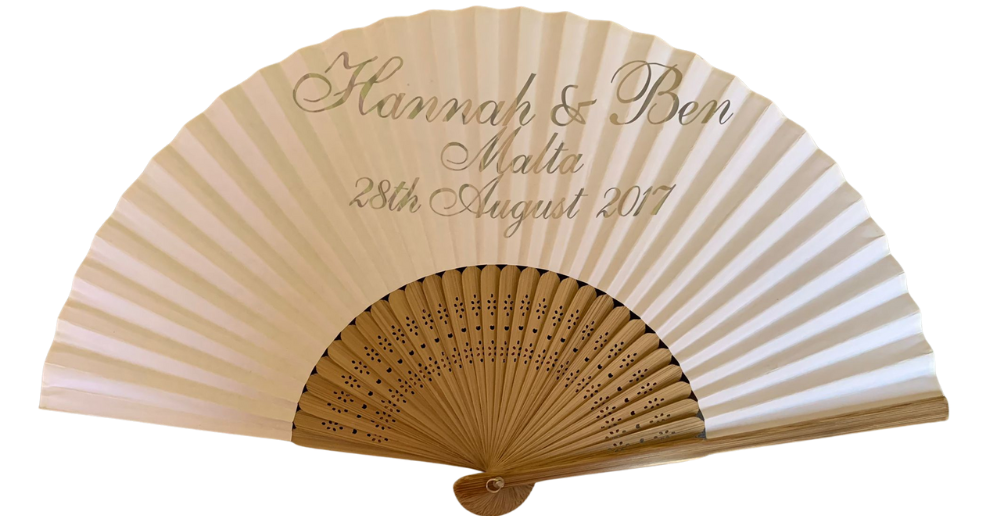 “I received the fans this morning and I can't thank you enough for your assistance. First class. The bride to be was so pleased with them a lovely touch for her wedding. Thanks again”